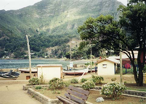 The park and town square. Boat repair was done across the street. Long round timbers are used as rollers to manuver all boats around when on shore, even the 40 footers!