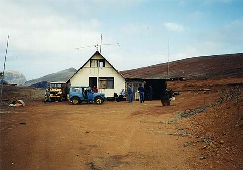 John, CE0ZAM lives part time at the airport as he handles much of the work there. His wife runs a nice cafe in the village. He has dipoles for 40 and HF frequencies and a tri-bander. His six meter yagi is inoperative and is hiding in the shed at the right. He and Elizar maybe going to San Felix this coming October, CE0X.