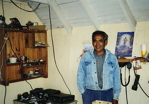 John, CE0ZAM. Real pleasure to meet him. He runs a Kenwood TS690S radio on amateur radio and for HF aircraft communications. They run a very noisy generator and batteries for electrical power at the airport.
