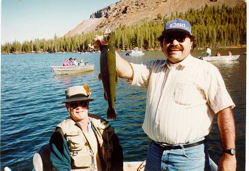 Wayne AA7AO , and Leo KJ6HI trout fishing at Otter Creek Resorvoir, Utah.