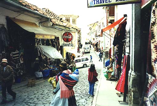 La Paz street scene. Artisan street where sweaters etc. are sold to tourists.....like me