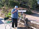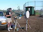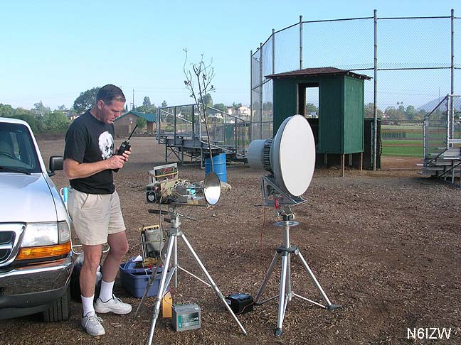 Chuck, WB6IGP aiming laser Xcvr at N6IZW across the