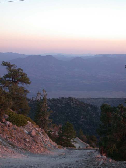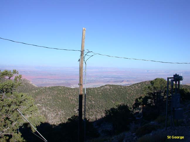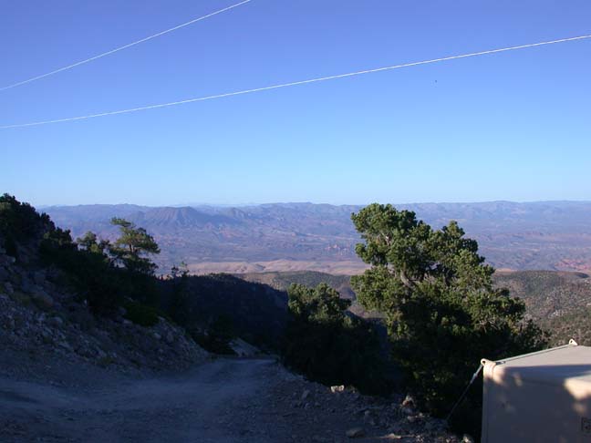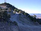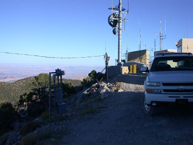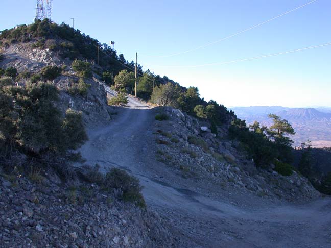 Below: West Mountain Peak, locally known as Utah Hill at 7200 feet, and a very steep road near the top. We easily worked WA6CGR and N6RMJ (1w) on Silver Peak on the East side of the Sierras at 240 miles, W6AT on Keller Peak at 240 miles and KE6HPZ in Huntington Beach at 340 miles and WA6CDR on Signal Hill. Several attempts were made with the Sacramento area with N6JV but conditions prevented this over the Sierras path from working. Mountains in every direction, no coastal ducting here. I'll be back! 1920 total miles driven this year running around. This was the first attempt to work into metropolis Southern California on 10 GHz from Utah and the path is there as predicted. Conditions could have been better. Maybe next year we'll be back with a longer stay earlier in the summer. It looks like hurricane Javier wiped out the guys in Mexico, the cold storm front messed up Northern California propagation and the wind blew everyone off the mountain tops in the middle.......