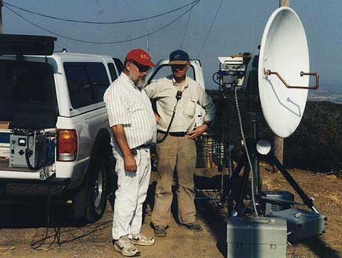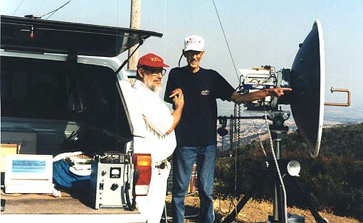 Robin, WA6CDR, and Ron, K6GZA with Ron's 10 GHz setup on Mt.