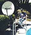 Lars, AA6IW, admires (?) ASL's "stealth" antenna. Robin's