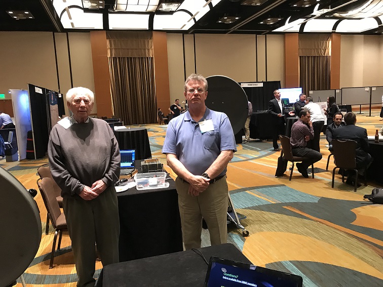 The IEEE Conference is still on in the Anaheim area, but SBMS and San Diego Microwave Group were there last night, promoting Amateur Microwave to both junior and senior engineering professionals in the wireless industry. Michelle Thompson - W5NYV was showing off her 3-D printed prototype of a 122 GHz cassegrain subreflector. Hers was, no question, the most high tech of the demos. Rein - W6SZ and Brian - AF6NA both brought our 10G rigs and had numerous conversations with interested people. I personally spoke with engineers from Italy, Poland, Germany, Austria, Spain, Canada, India and the U.S. One engineer from Santa Barbara said he used to work with Steve Miller - W6QIW, and I encouraged him to contact Steve about Amateur microwave.