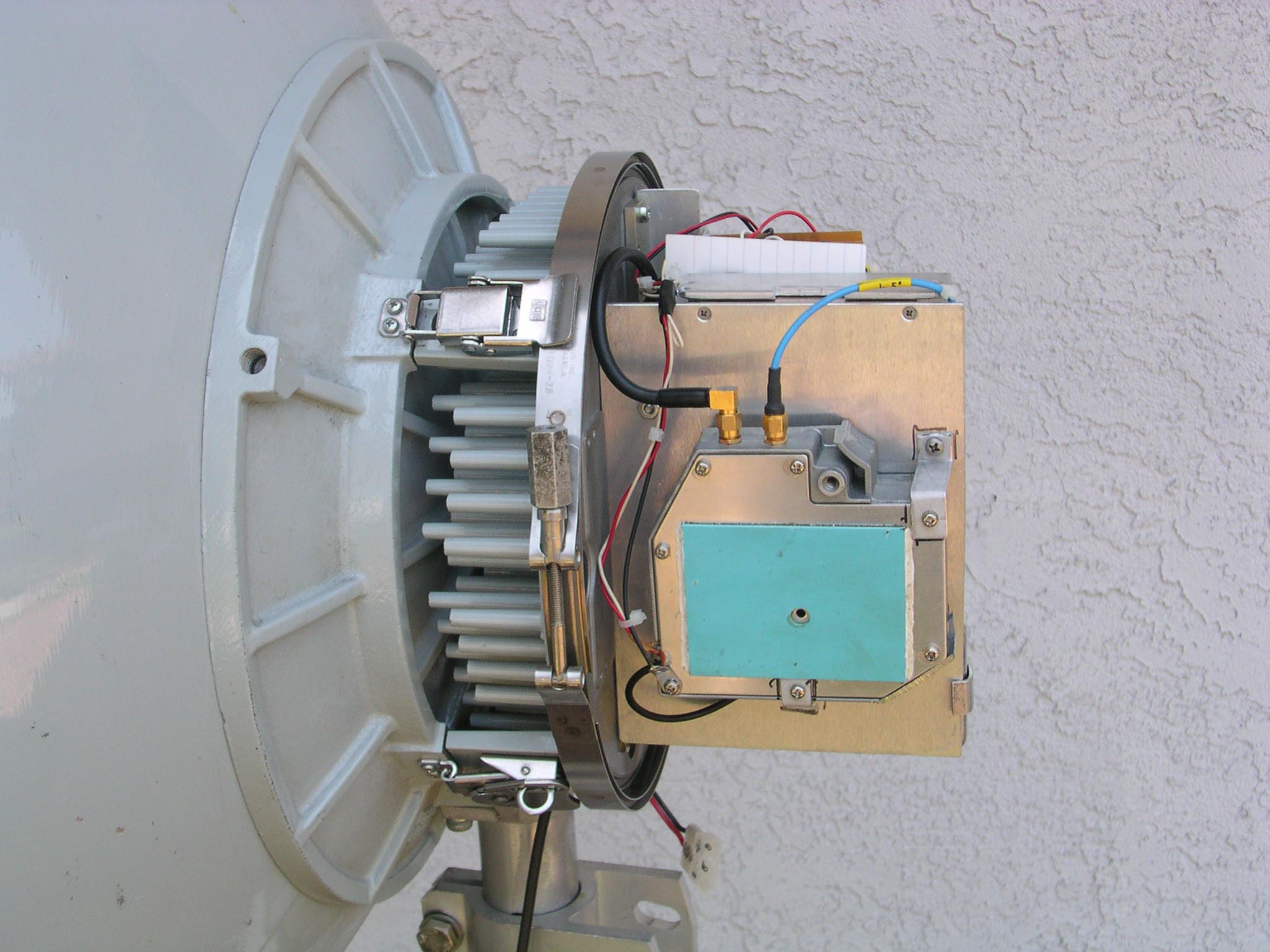 wavegide that engages the output of the ODU. The ODU is mounted to the back of the
