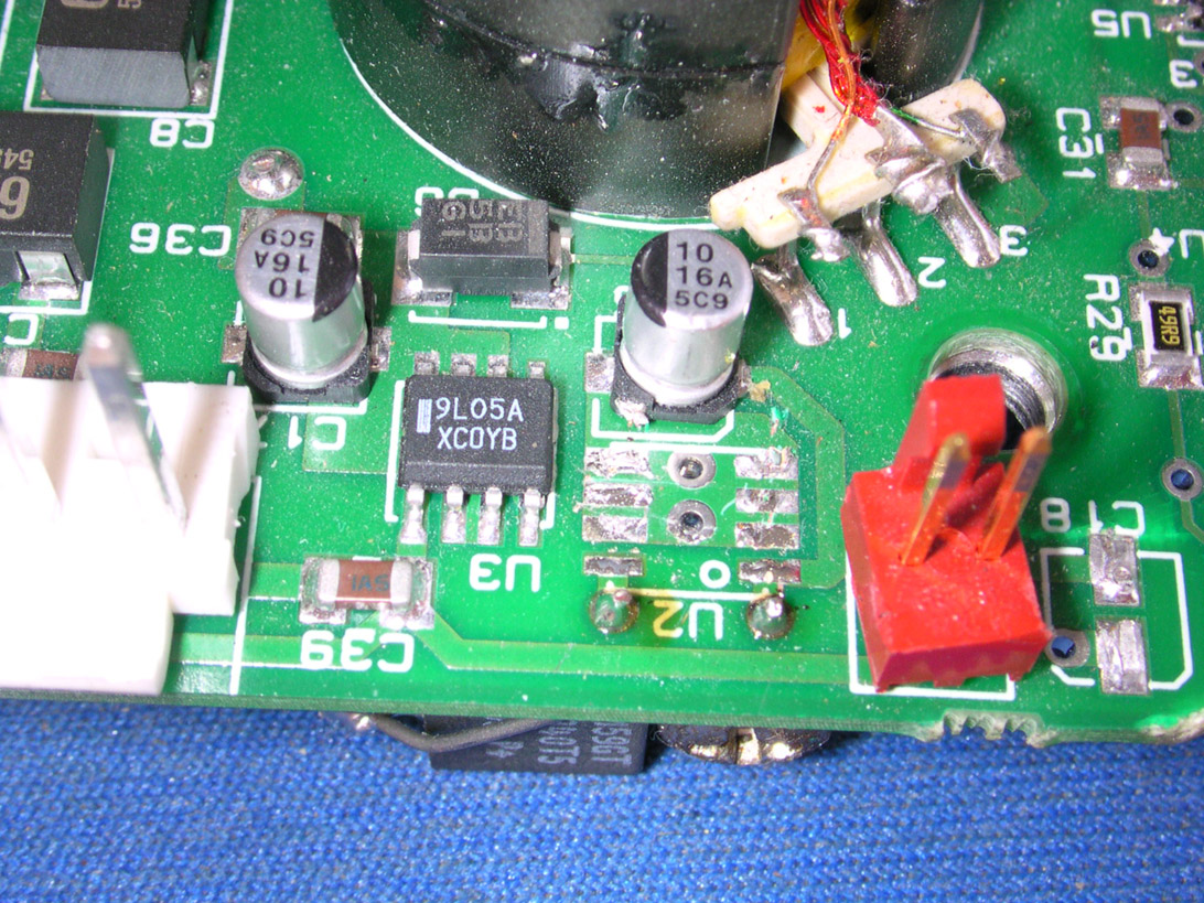 IC (U2) and replace it with a higher current 7805 regulator. The photos show the