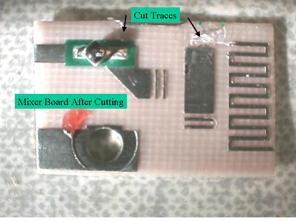 Remove the Chip capacitors from the mixer board before cutting