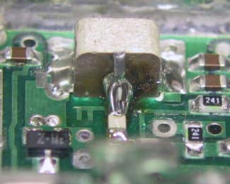 the VCO and RF components. The mod involves adding a solder blob to the DRO