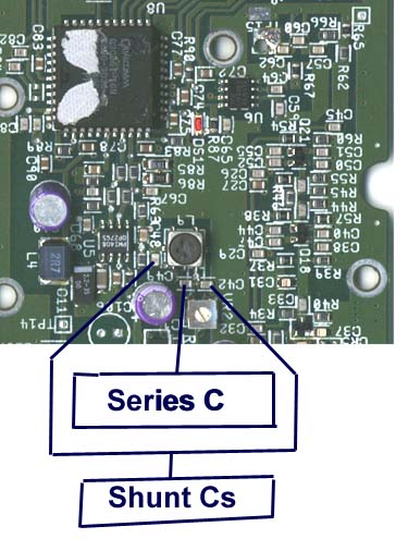 each of the shunt capacitors with 3000 pf chip capacitors, and