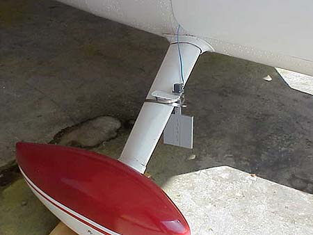 Close up of antenna mounted on wheel strut using footpad as a clamping point