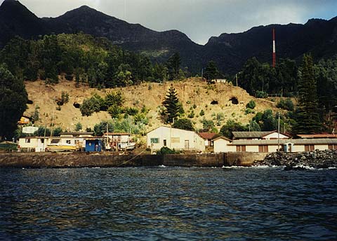 Another part of the village were the caves where about 300 Chileans hid to escape a war on the mainland. The two electrical power generators for the island (except our hotel) were to the left in a small valley. They were exceptionally quiet and produced almost no odor whatsoever. They were fueled every 45 days by the supply ship and use a hose from the dock, about 300 to 400 meters in length.