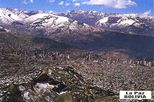 Post card of La Paz gives a very good view of the valley that surrounds the city.